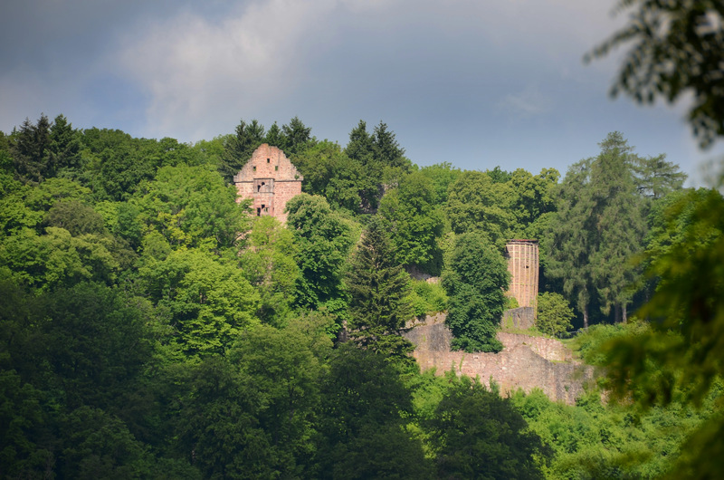 Auf der sogenannten “Burghälde”, einer heute bewaldeten Bergzunge im Osten Eberbachs, zeugen rund 150 Meter oberhalb der Stadt die Reste gleich dreier Burgen von der Bedeutung dieses Gebiets in Hoch- und Spätmittelalter. Ihren Besuchern gab die dreigeteilte Anlage seit jeher viele Fragen auf. Urkundlich war jedenfalls immer nur von einer Burg die Rede. Eberbachs älteste Burg lässt sich in das frühe 11. Jahrhundert datieren und befand sich noch in 800 m Entfernung auf dem benachbarten Ohrsberg.