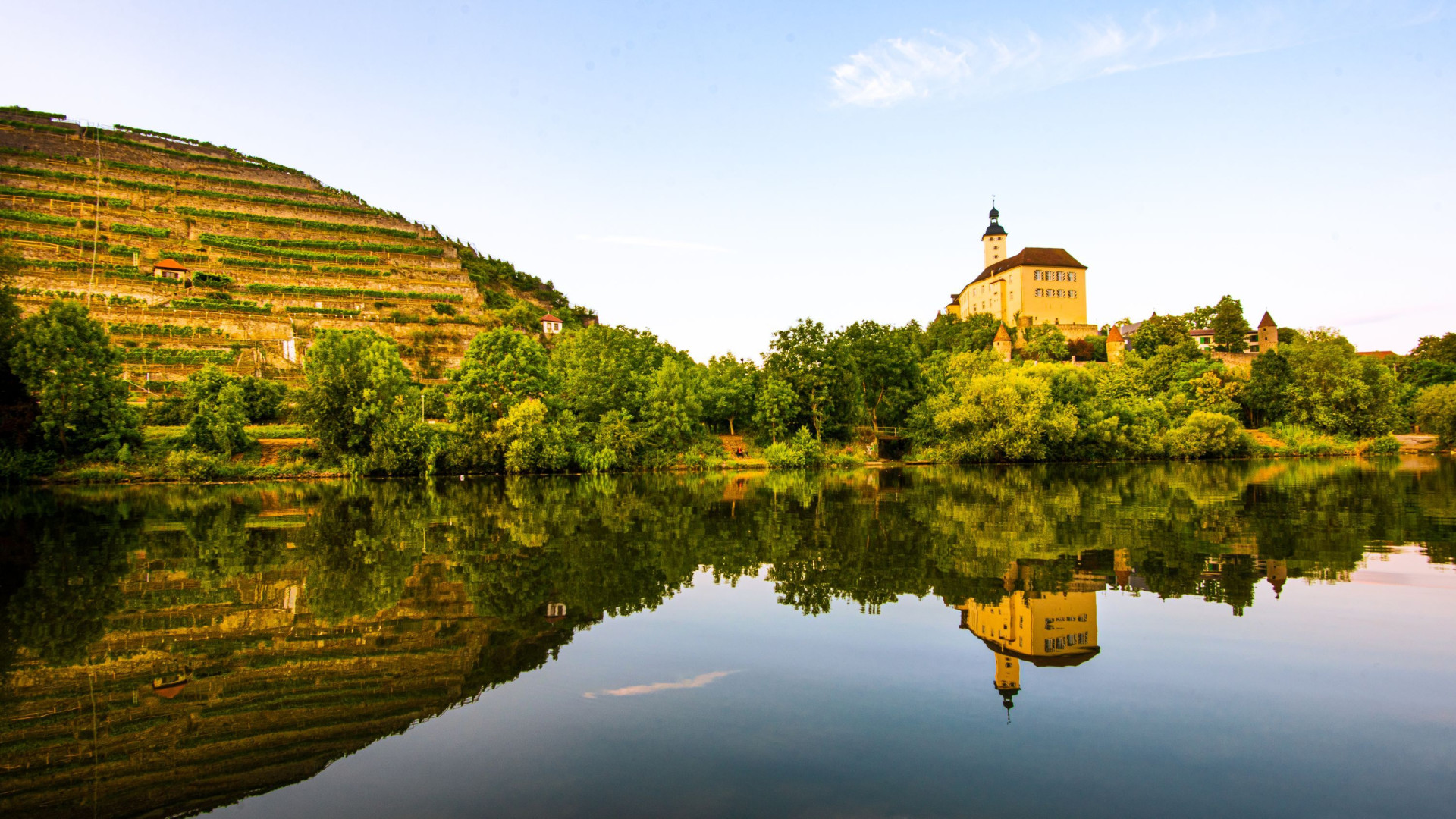 Schloss Neuburg liegt an den südlichen Ausläufern des Odenwaldes im Neckartal zwischen Heidelberg und Heilbronn. Beeindruckend sind das fünfgeschossige Hauptgebäude und die Aussicht. Im Jahr 1845 von Graf Karl von Leiningen-Billigheim gekauft und umgestaltet, fällt es heute schwer, sich das Schloss als wehrhafte mittelalterliche Burg vorzustellen.