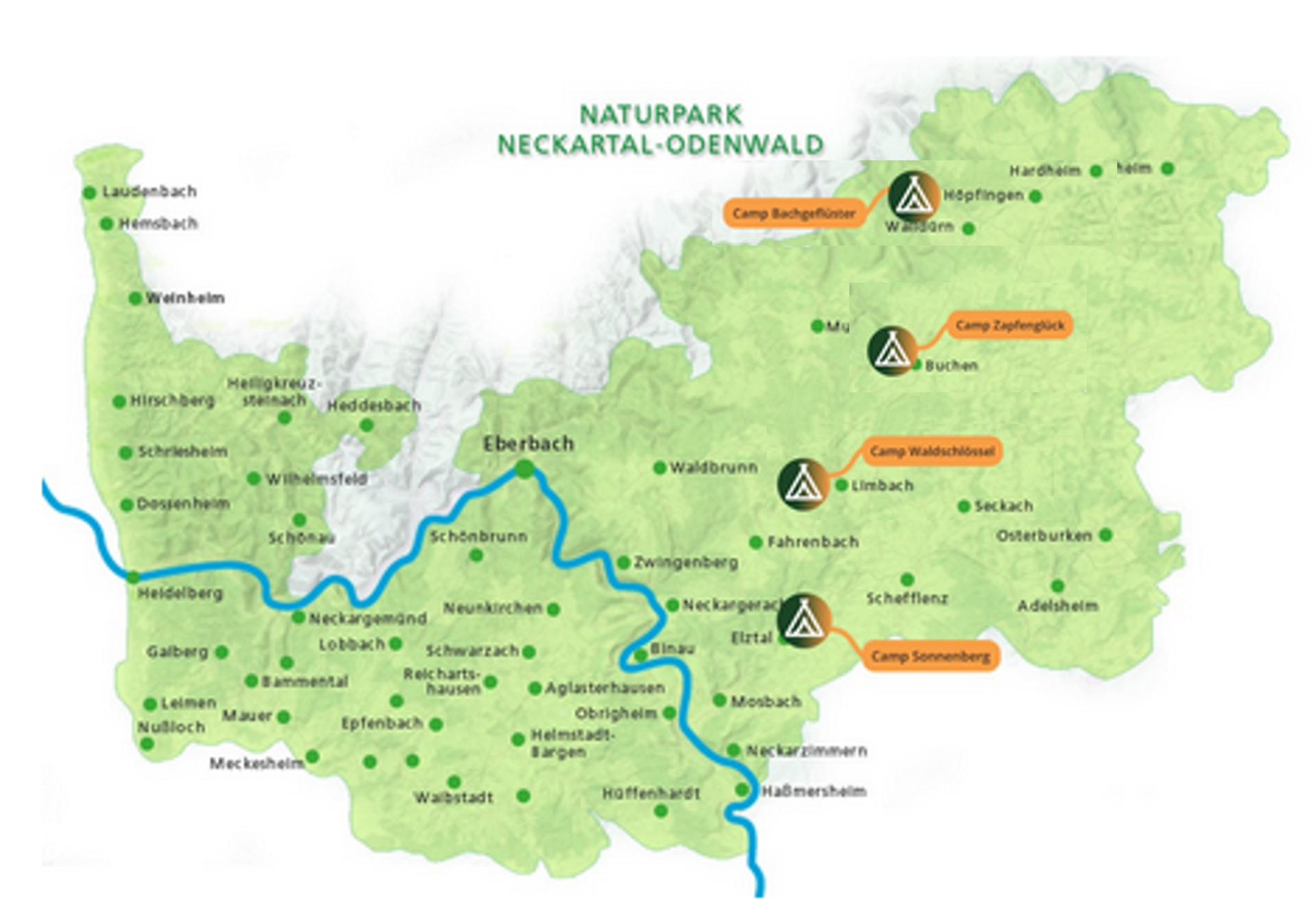 Habt ihr Lust auf ein Abenteuer unter freiem Himmel? Bei uns im Naturpark Neckartal-Odenwald könnt ihr die Natur zu Fuß intensiv erleben – durch dichte Wälder, plätschernde Bäche, sanfte Hügel und tief eingeschnittene Schluchten. Seit 2021 bieten wir für mehrtägige Touren naturnahe Übernachtungen in unseren vier Trekkingcamps an. Jedes Camp ist über eine Tagesetappe zu Fuß erreichbar und bietet euch die Möglichkeit, die Natur rund um die Uhr zu genießen – bei einer einzelnen Übernachtung, einem Wochenendausflug oder einer ausgedehnten Mehrtagestour.