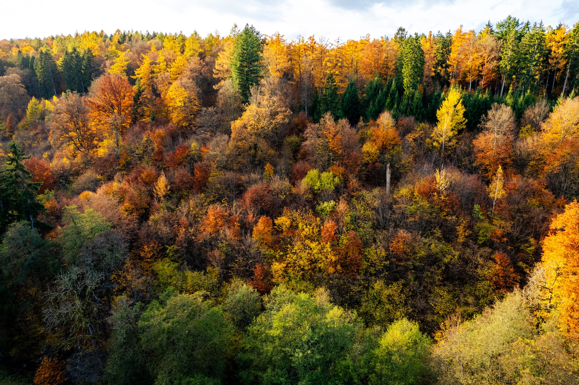 Herbstwald aus der Dronenperspektive